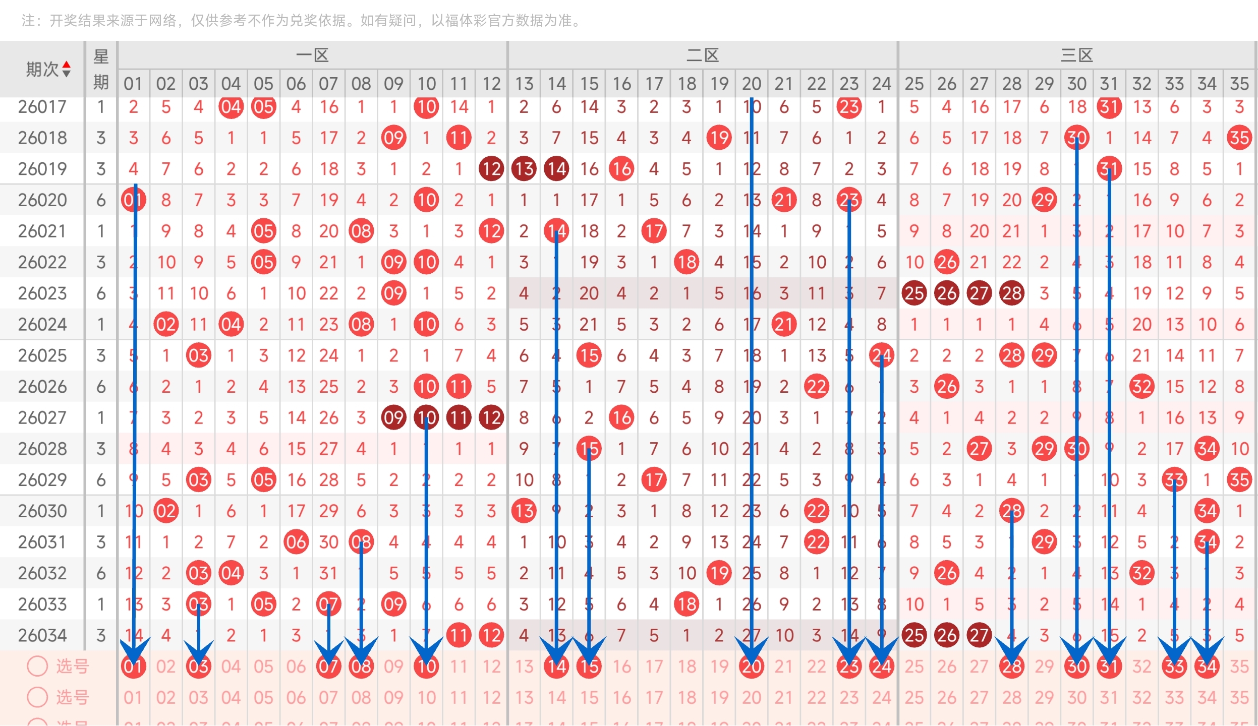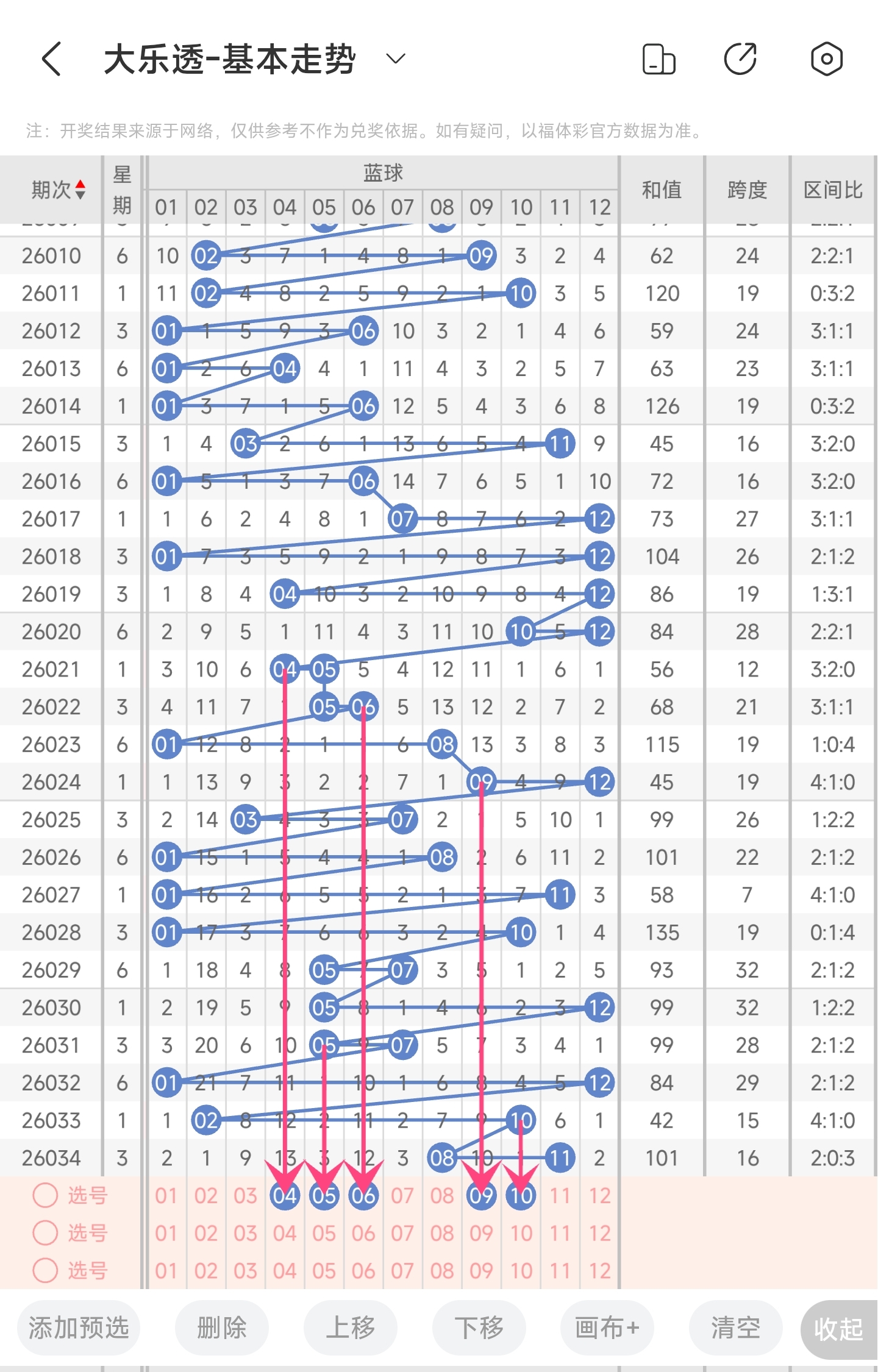 第26027期大乐透文章推荐命中4+0,红球3胆码中10,龙头命中9。