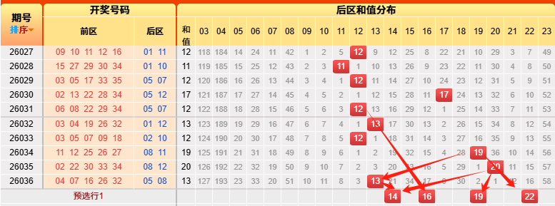 前区分析完毕,我们再来看后区小大、奇偶、质合、和值分布图: