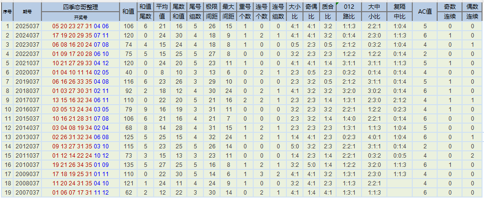 下图为大乐透彩种诞生以来每年的037期各类数据以及历年同日期开奖数据,各位大佬及彩友们请拿走~