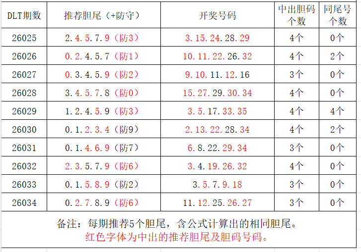 如图,每期推荐胆尾中出1-4个。上期推荐胆尾中出3尾3码!推荐胆尾是按照公式计算的顺序,不定位红球号码的顺序。本期推荐胆尾:9尾/0尾/8尾/2尾/4尾,加推防守胆尾+胆码号码:***(会员专区可见)。个人分析,仅供参考。
