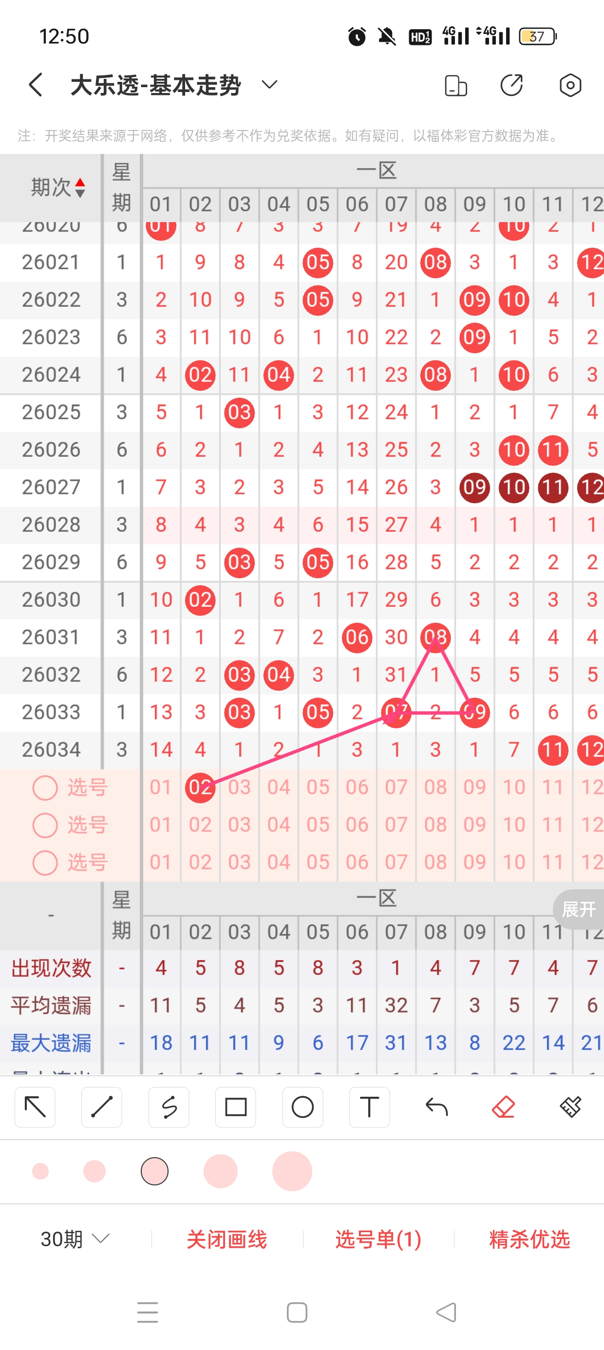 一区(1-12)近38期本区邻孤传13邻26孤1传,孤号热度高,本期着重邻传。近38期本区012路8:20:13,1路热度高,本期着重0/2路。2已遗漏4期,与7之间呈现向左遗漏递减态势,需防。