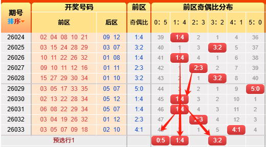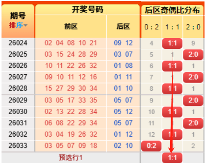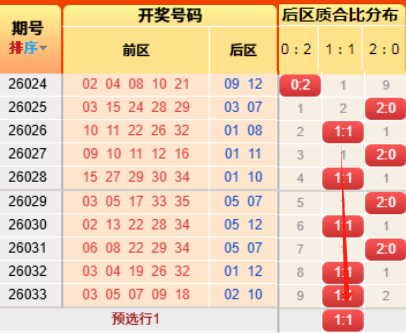 上期后区开出奇偶比为0:2