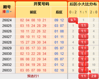 上期后区开出小大比为1:1