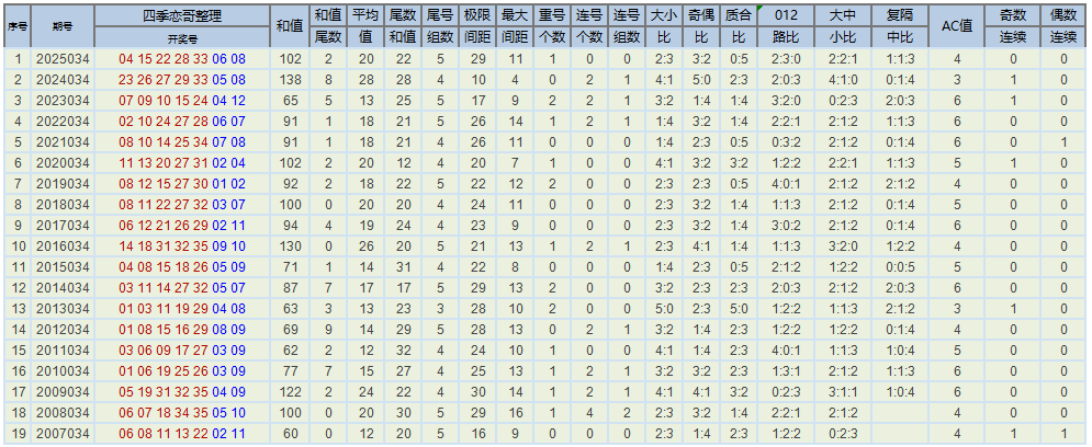 下图为大乐透彩种诞生以来每年的034期各类数据以及历年同日期开奖数据,各位大佬及彩友们请拿走~
