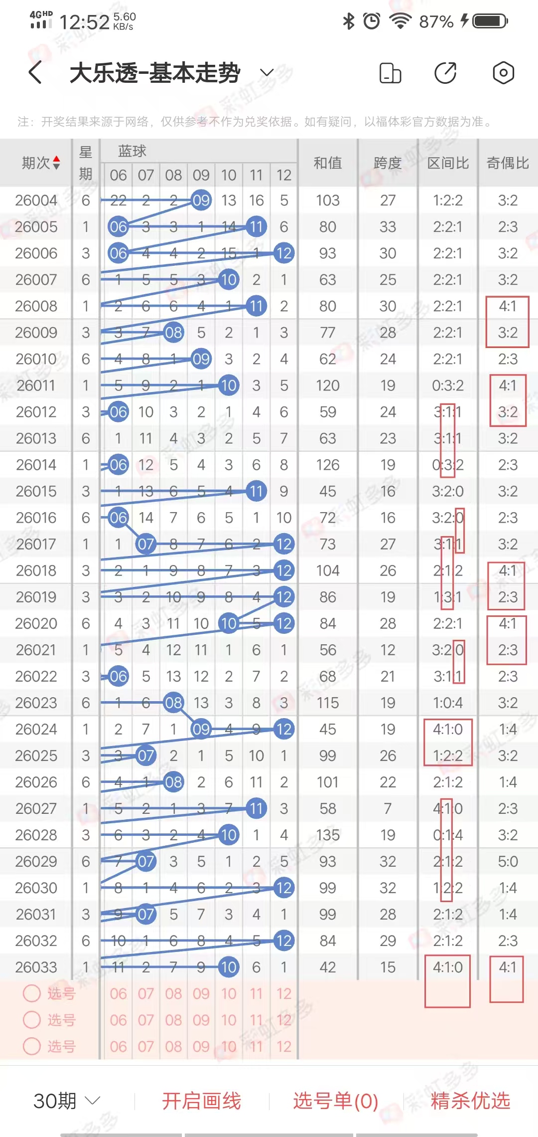 ✔本期大乐透奇偶比分析