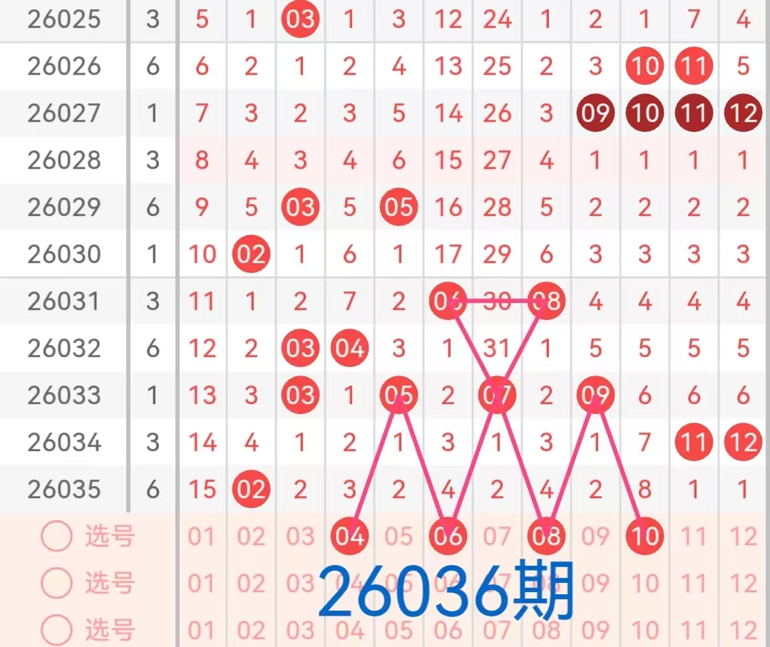 3. 三区(25-35):上期该区间开出三个号码30、33和34。号码30遗漏6期后开出,号码33相隔5期后开出。号码34为该期的凤尾号码,在遗漏3期后开出,且与号码33形成一组二连号的形式。由于上期开出的凤尾号码偏大,本期号码会由此减小,凤尾号码预计会在本区间出现,重点关注号码30、31、34。但是观察历史开奖来看,该区间近期出号较少,因此本期考虑仍然会有1-2个号码继续开出,特别是那些近期表现较热的号码,如号码26、28本期有望继续开出,因此它们有可能成为本期的出号热点。