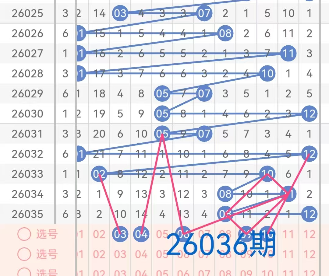 后区号码范围为01-12,分为两个区间:小号(01-06)和大号(07-12)。上期开奖号码为08和12,为两个大号的组合。