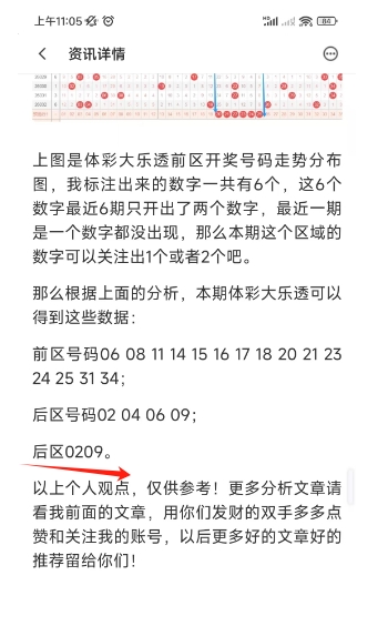 上图是上期体彩大乐透号码分析文章的截图,我最后后区推荐的两个数字02 09而上期后区开奖号码是02 10,这个你们自己去看上期的号码分析文章吧。