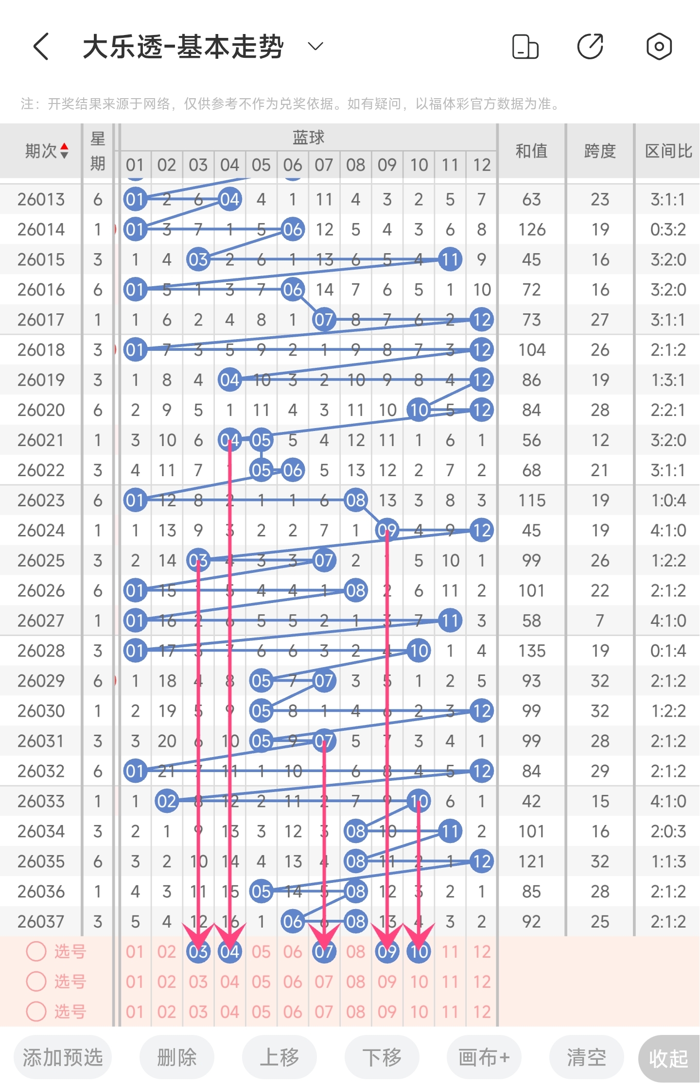第26027期大乐透文章推荐命中4+0,红球3胆码中10,龙头命中9。