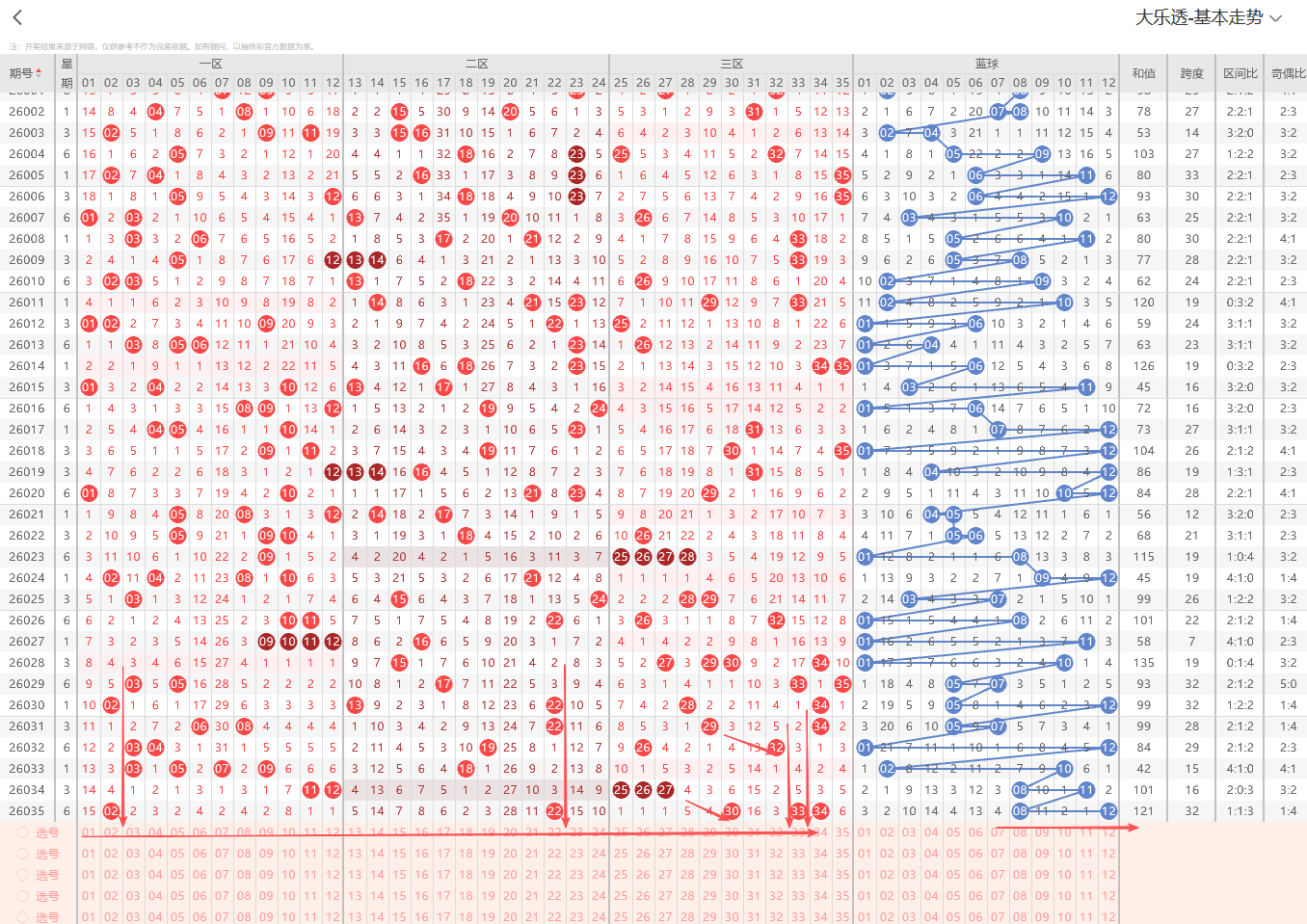 上期开奖号码为:02 22 30 33 34 08 12 区间比113 和值121 跨度32 奇偶比1:4
