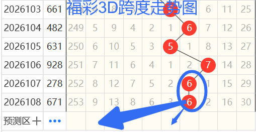 依次是65766跨度,按照路数转换关系来看,那么跨度我们暂定147258跨 ,本期个人比较看好5 1跨。