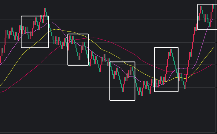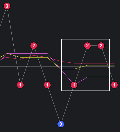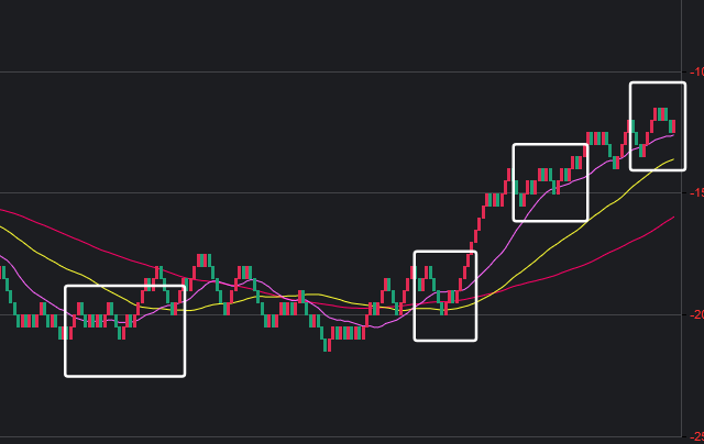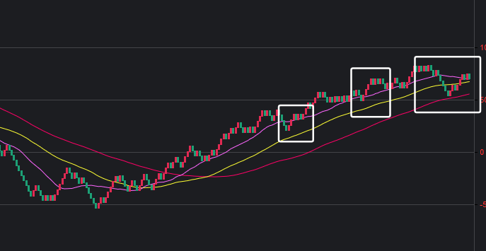 可以看到一些规律,在粉框中,如果一致,那么接下来这些跨度也会出。