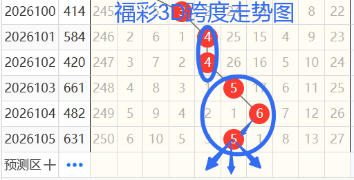 依次是44565跨度,按照路数转换关系来看,那么跨度我们暂定369258跨 ,本期个人比较看好4 5 6跨。