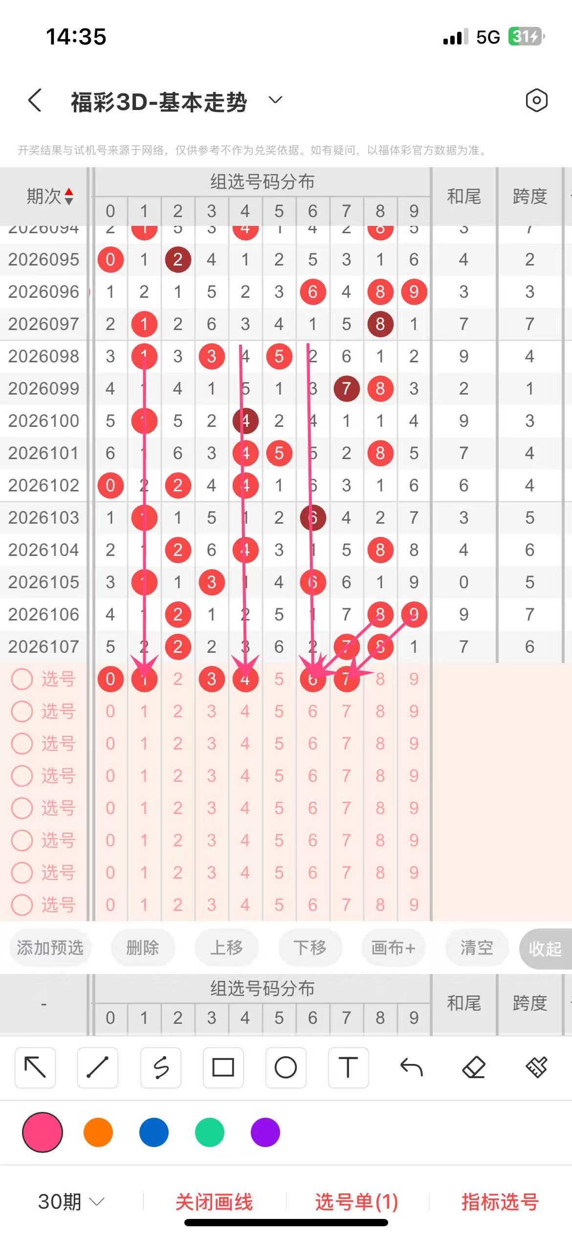 跨度:5→6→5→7→6。跨度在5-7之间来回,没有极端值。预计下一期将继续在5-7区间运行,重点关注6和7