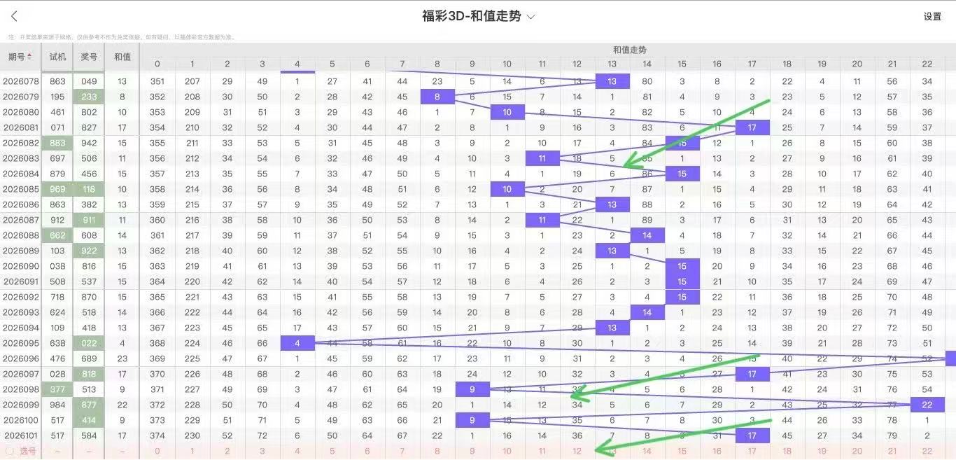 上期开出和值17,和值在第2分区,而近百期开出和17共11次,下期数据:10 7 7 9 18 10 16 4 15 9根据和值17的下期钟摆走势来看上升趋势稳定,近期和值喜在第2分区活动,和值形态规律:奇:小和尾形态奇:小,那么本期重点推荐值范围是:9-19主奇形态