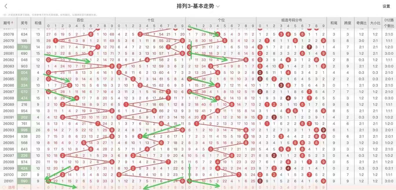 百位近5期为:偶奇偶偶偶,结合近期间隔走势明显,奇继续,本期继续推荐:奇