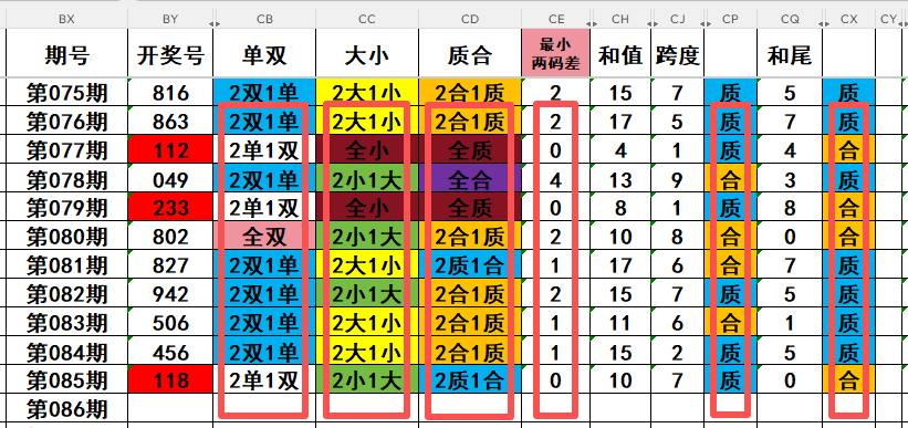 3,目前开奖号个位号码球11天当中,质数(12357)开出了6次,合数(04689)开出了5次,本期重点关注开奖号个位号码球合数的回补!