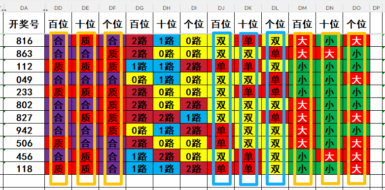 2,目前开奖号十位号码球11天当中,质数(12357)开出了6次,合数(04689)开出了5次,本期重点关注开奖号十位号码球合数的回补!