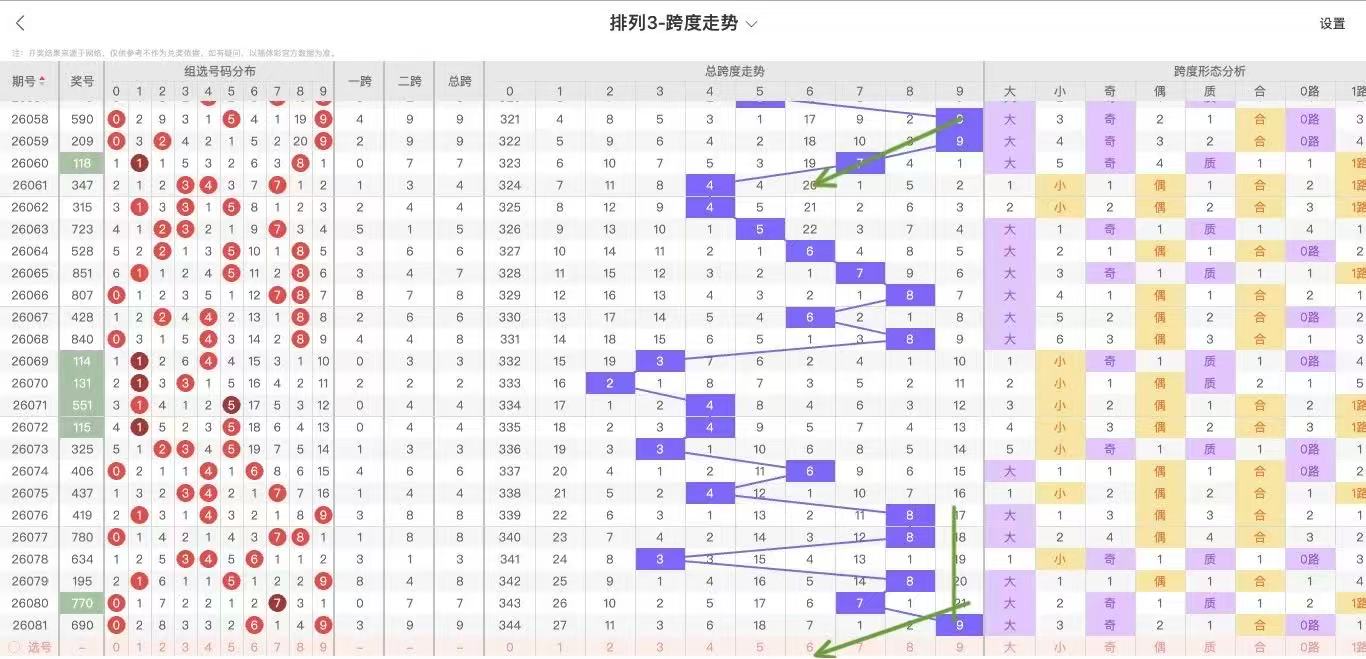 根据走势对跨度观察统计得到以下分析结果:
