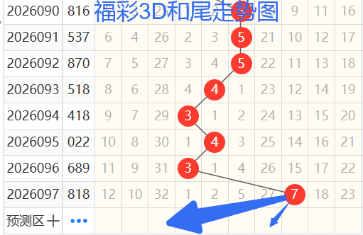 依次是43437和尾,按照012路排序是10101路和尾,后面两期不是同路,今天就是0路和1路的和尾,为什么这么讲呢,这个是个大概率的问题,也是根据长期的研究规律定的,准确率相当高,我定了0路和1路的和尾,也就是1470369尾,那么我们再来看和值,按照和值除3余数的话,可以分为余0 1 2路. 那么我们来看,93期和值14余2,94期和值13余1,95期和值4余1,96期和值23余2,97期和值17余2,那么本期看和值看余0和余1,根据上面的和尾那么就只有10 13 16 19 7 防12 14值。