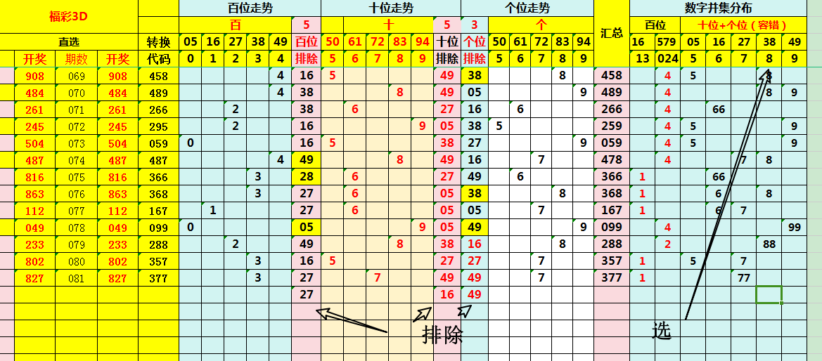 合值之解,简单明了:即三个数字相加之和,取其尾数便是。基于前文逻辑,一脉相承,搭建合值研判表格,层层递进,助力研判: