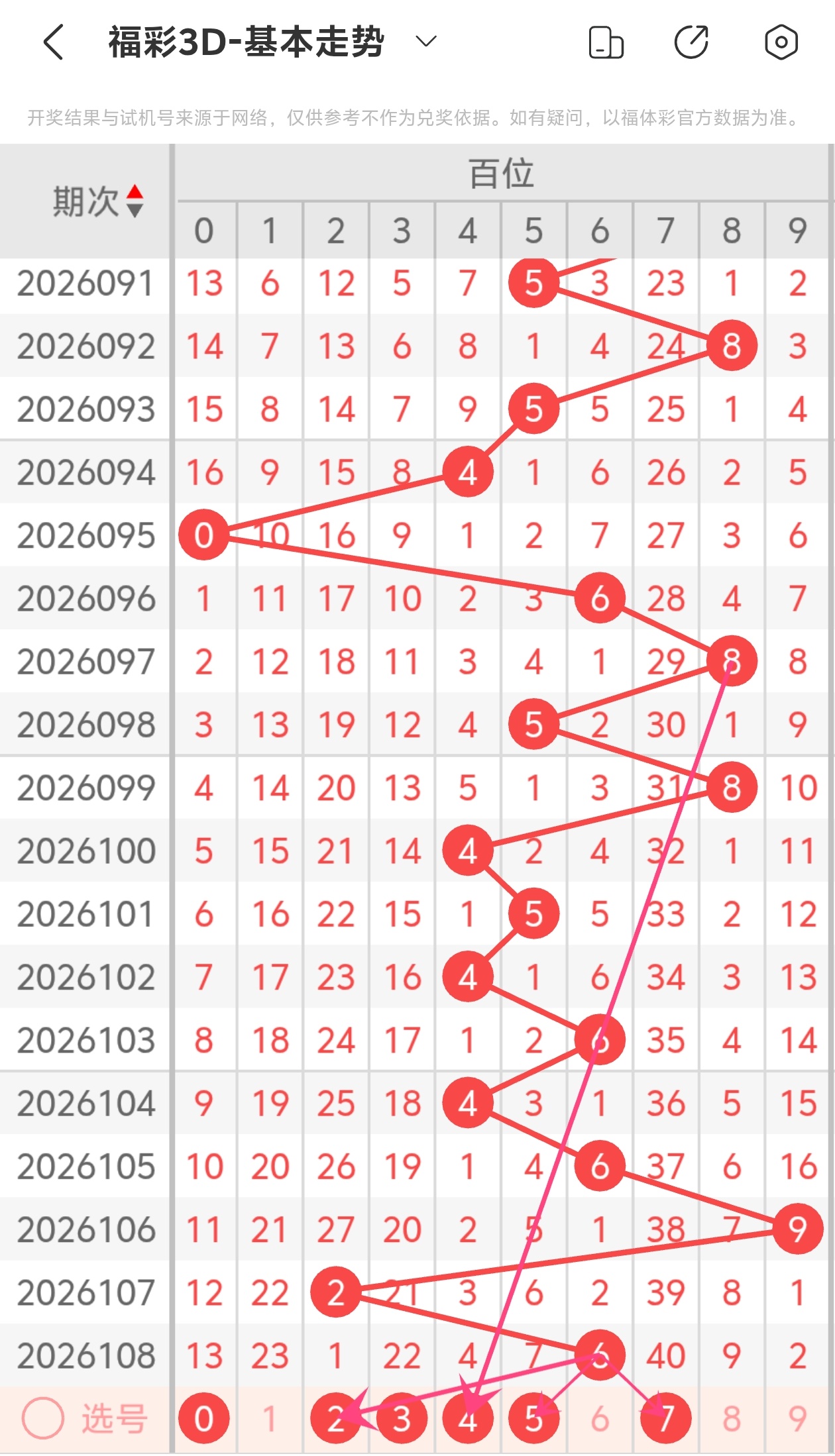 下面是福彩3D的百位走势图分析
