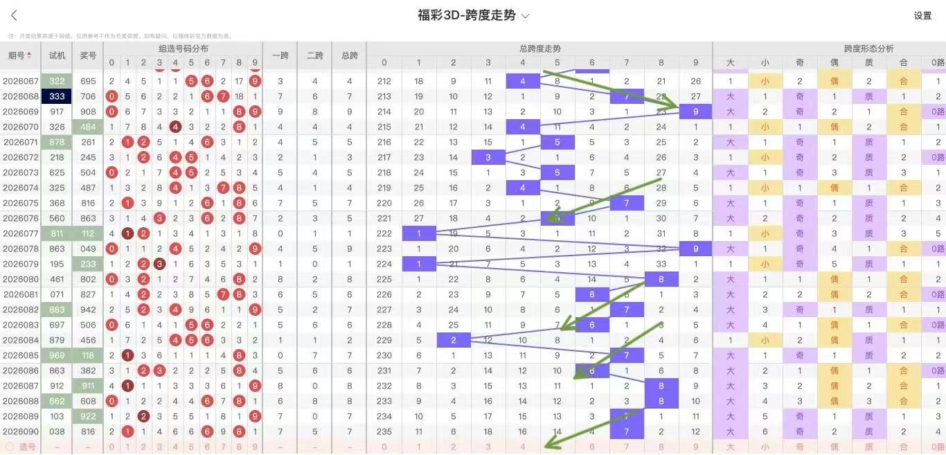 2026091期福彩3D跨度走势图如下: