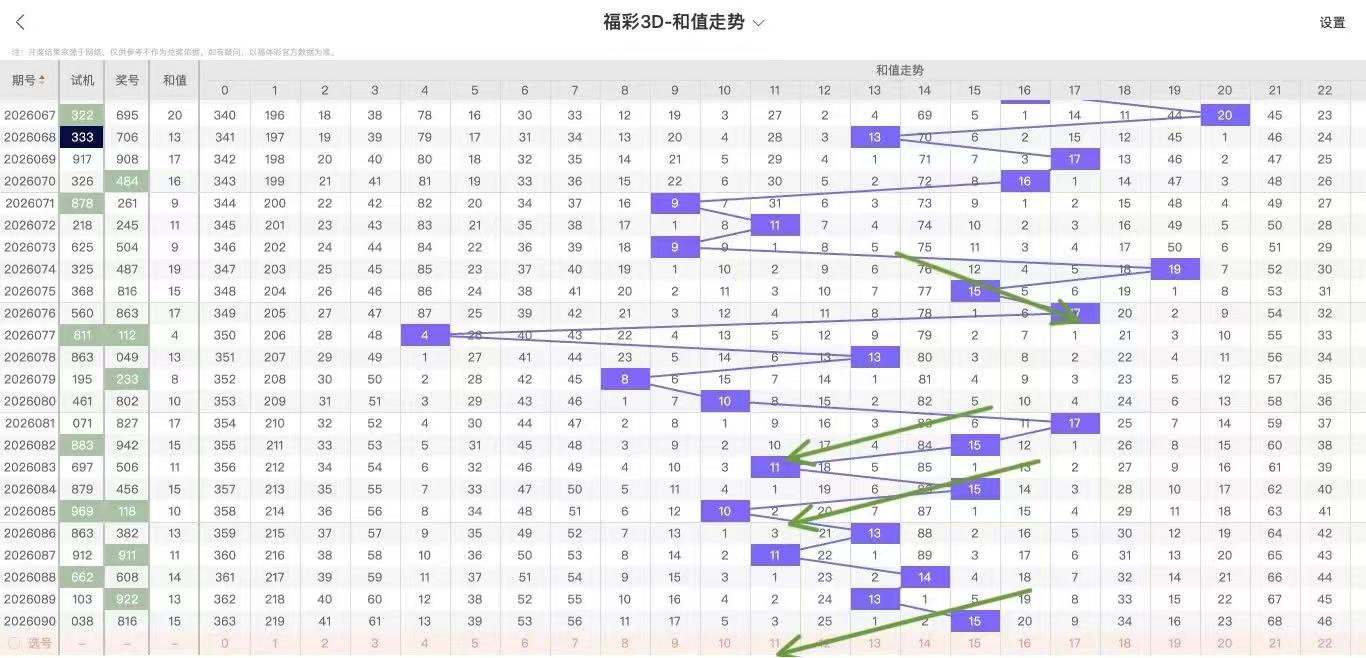 2026091期福彩3D和值走势图如下: