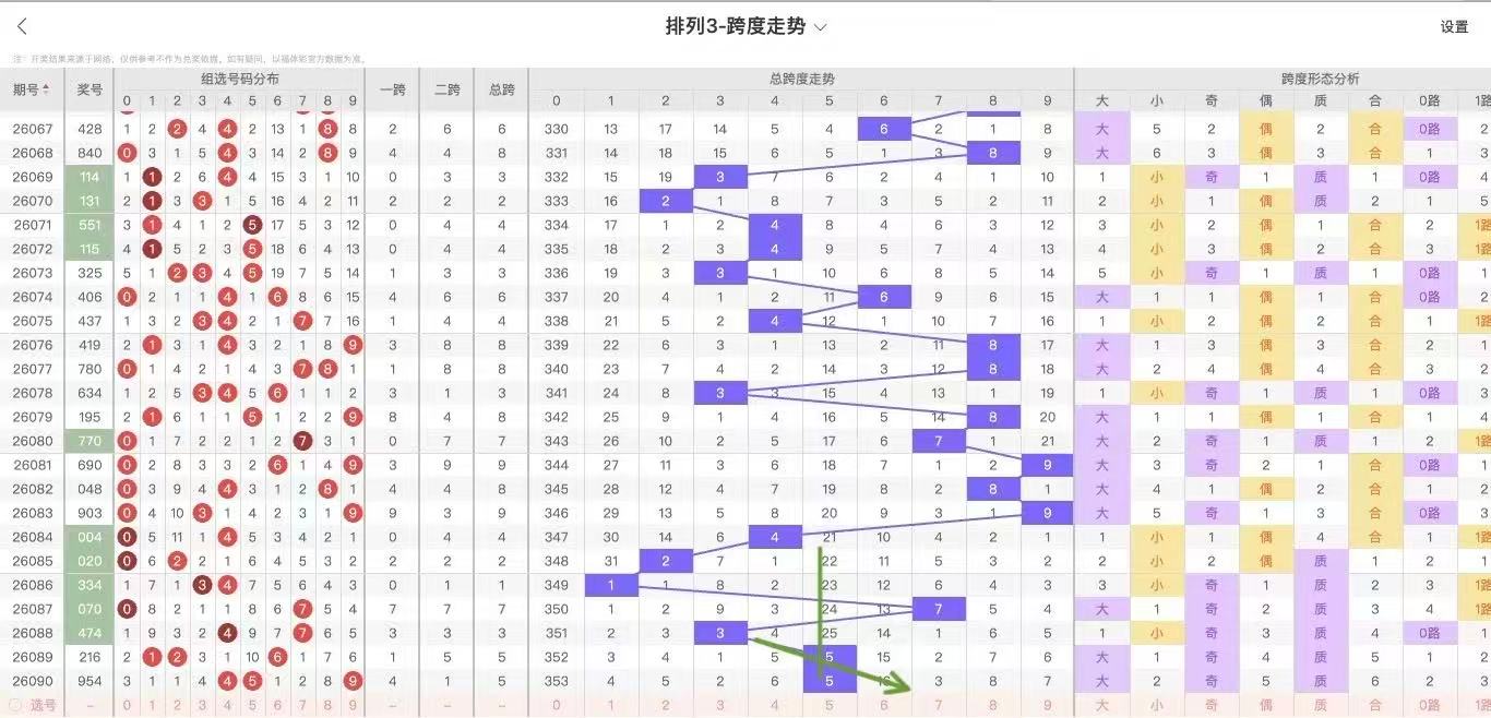 根据走势对跨度观察统计得到以下分析结果: