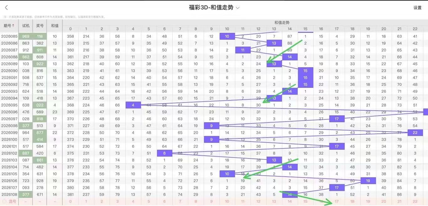 上期开出和值14,和值在第2分区,而近百期开出和14共4次,下期数据:13 13 10根据和值14的下期钟摆走势来看上升趋势稳定,近期和值喜在第2分区活动,和值形态规律:奇:小和尾形态奇:小,那么本期重点推荐值范围是:9-19主奇形态