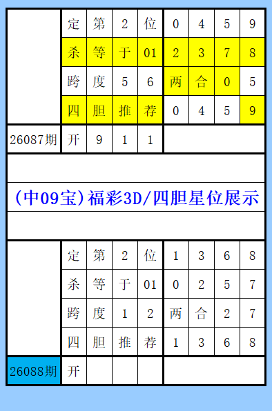 福彩3D第26088期(综合图文),单选推荐,视频上期五胆09416