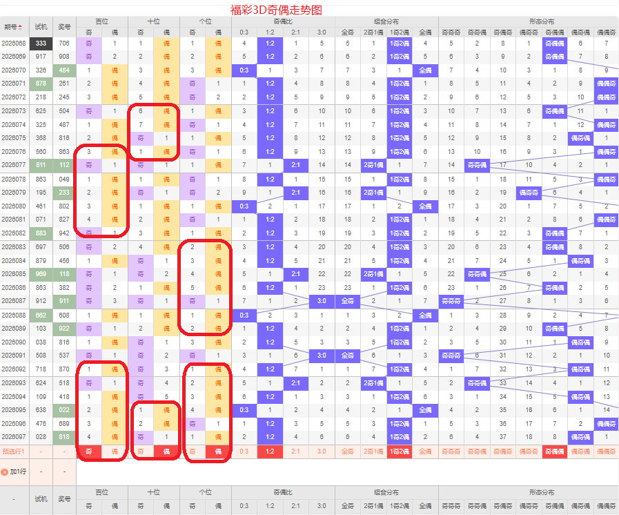 百位近四期是偶数的号码,侧重大号码,侧重奇数的号码,侧重0路和2路的号码,侧重号码56789。