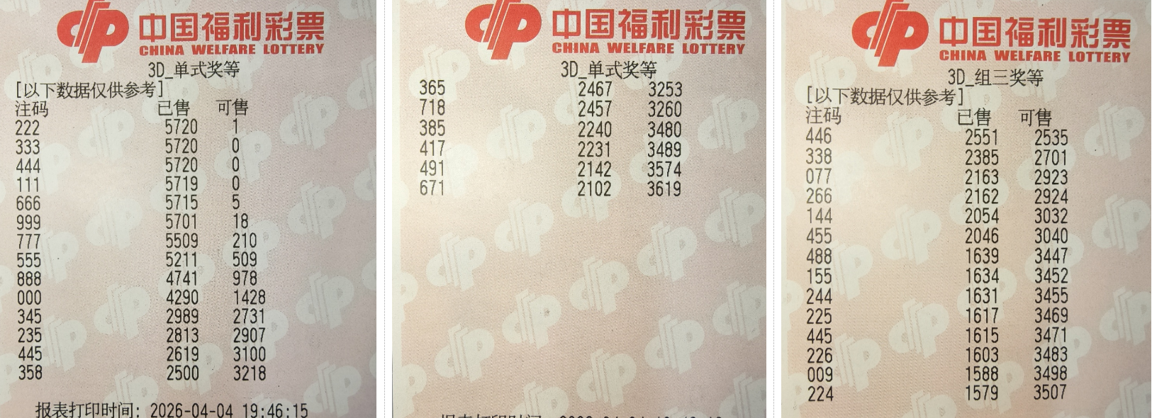 由于3D玩法灵活多变,我主要使用统计这些对码和补码的出次,选取排序前四的号码来做胆组。