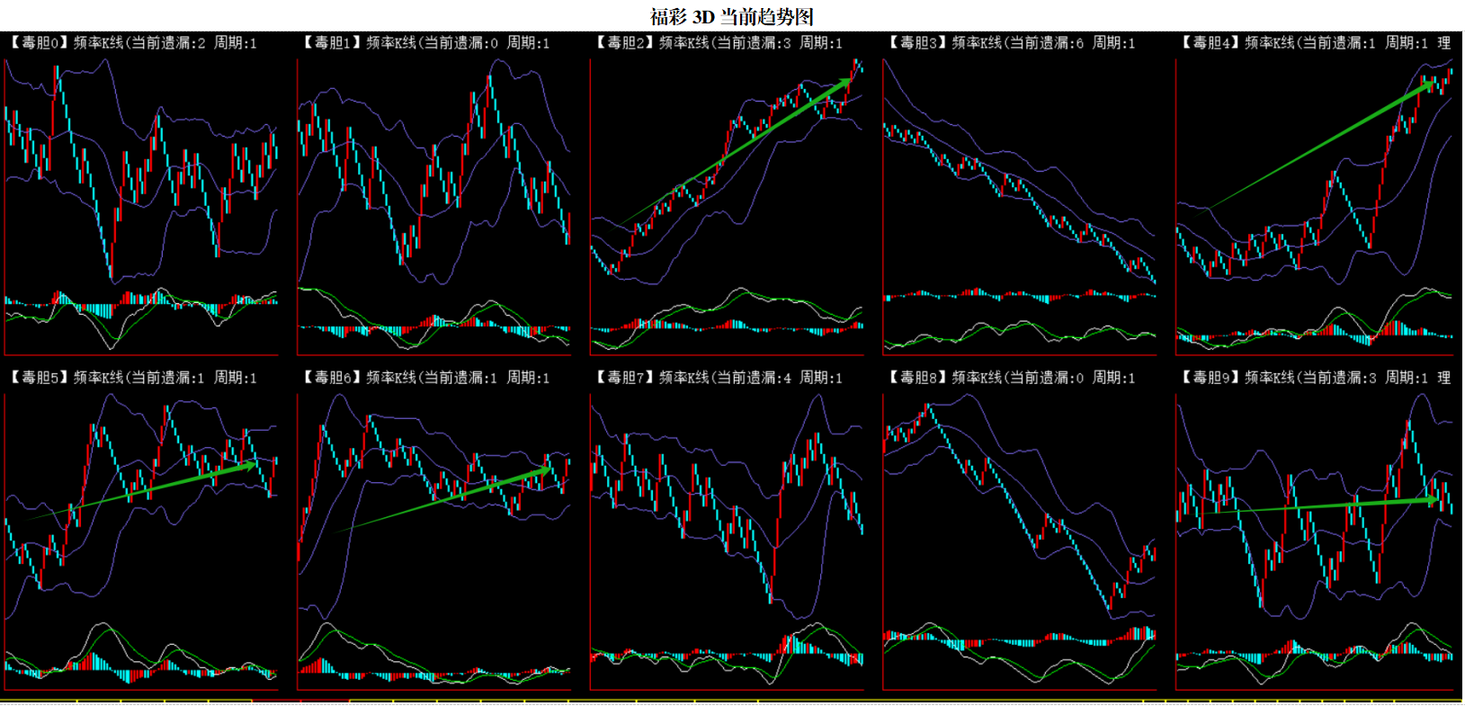 整体趋势上行,上边沿线趋势向上,下边沿趋势也是向上,节点震荡,当前遗漏1期,本期关注。