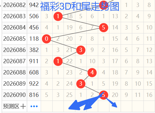 1)我们来看和尾,以086期——090期为例,如图