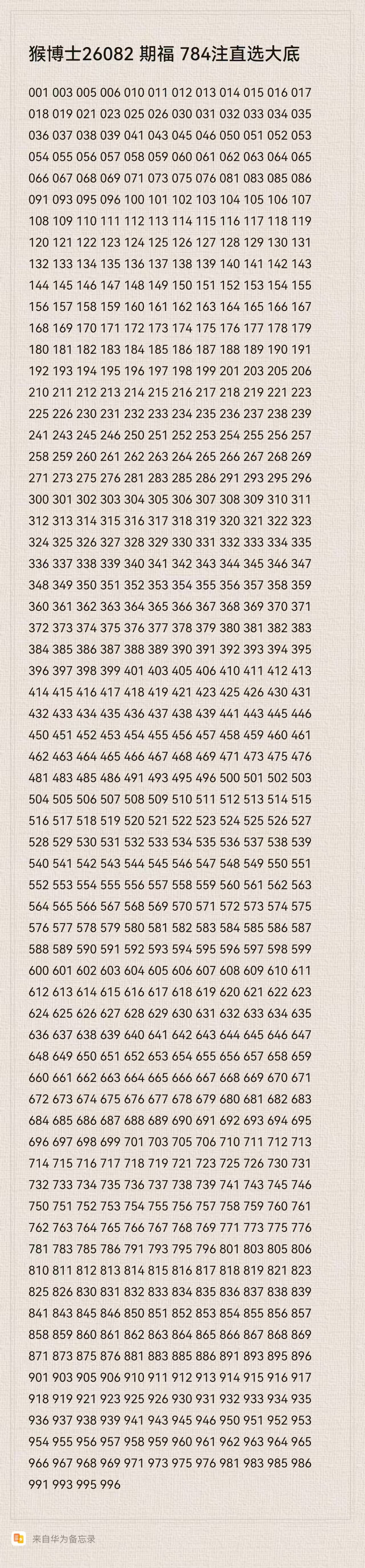 各位朋友们,大家好!我是猴博士。首先感谢您的信任与支持,博士今天为大家提供本期文章的号码分析,希望能帮助大家在购彩的道路上越走越顺,收获更多的惊喜和欢乐。