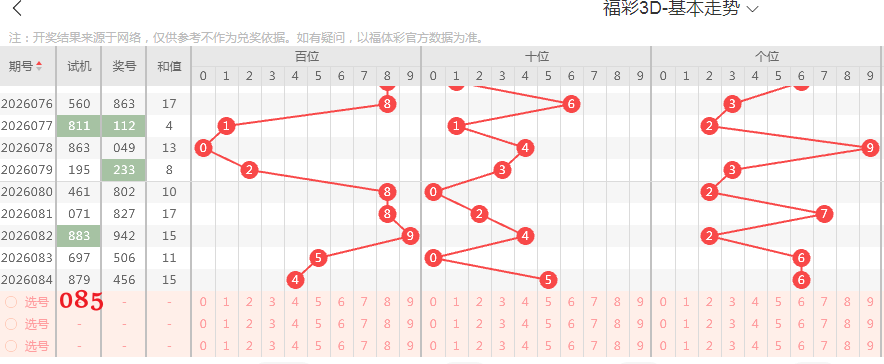 福彩3d第085期定位直选技巧分析