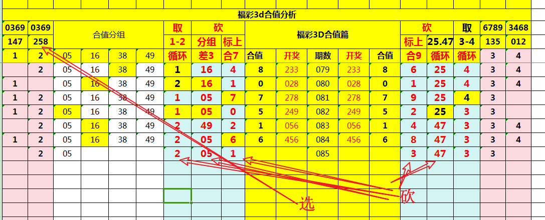(1)合值之解,简单明了:即三个数字相加之和,取其尾数便是。基于前文逻辑,一脉相承,搭建合值研判表格如图: