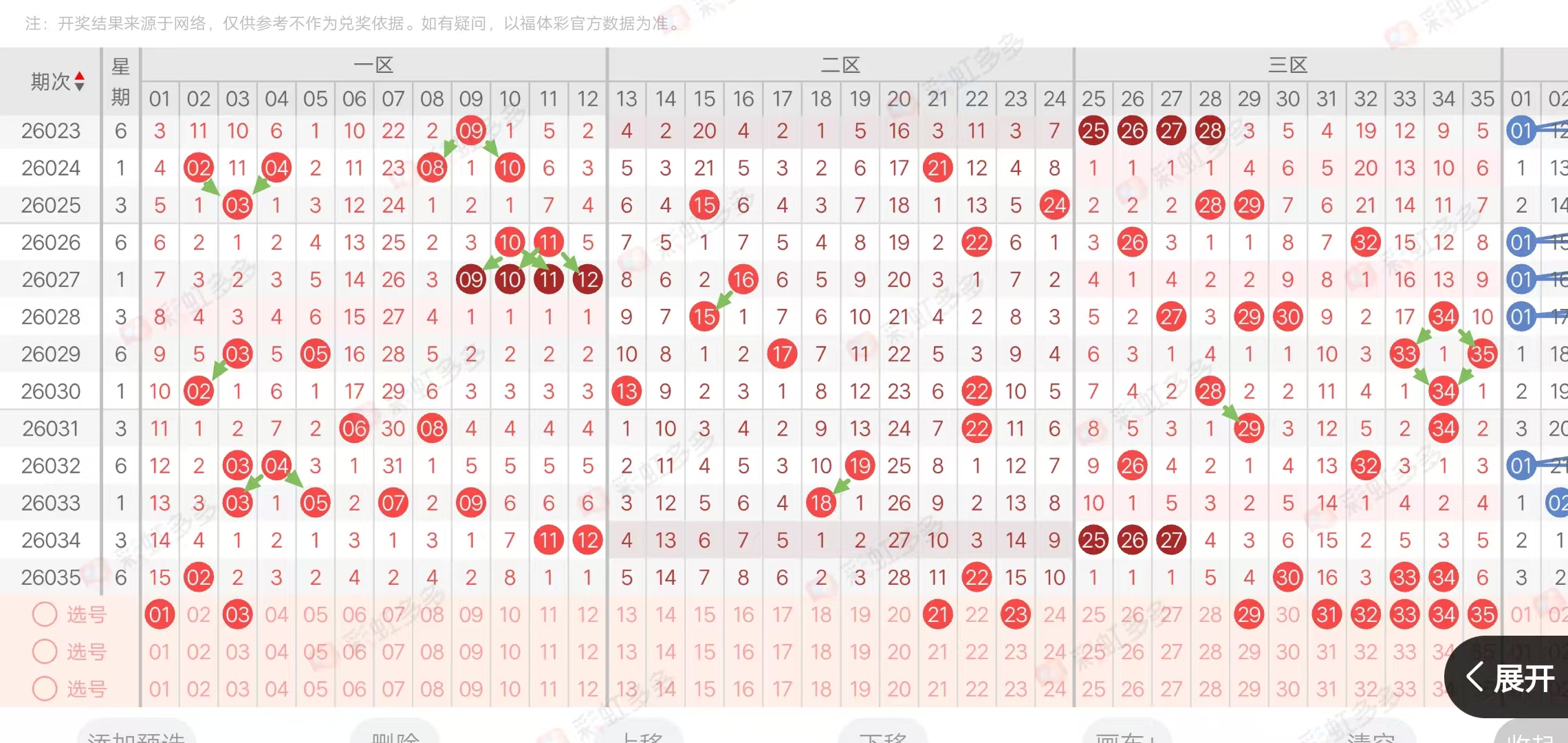 各位自己参考前面的条件,增加一些条件过滤就可以了,不想过滤的也可以根据三区,大小,合理搭配,还可以在重码,隔期码,邻码,参考一下。