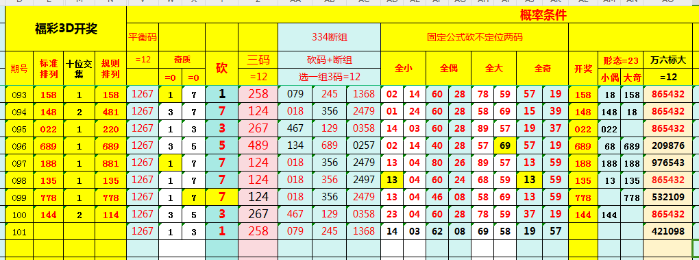福彩3D第101期“标准排列”分析