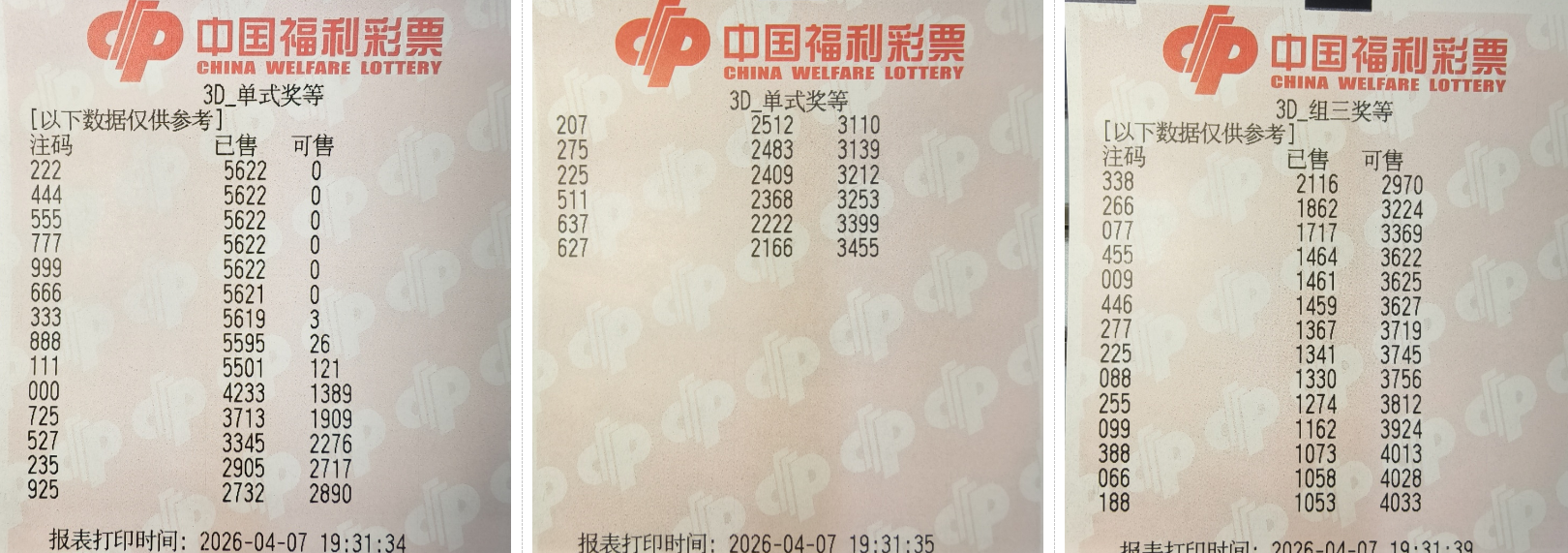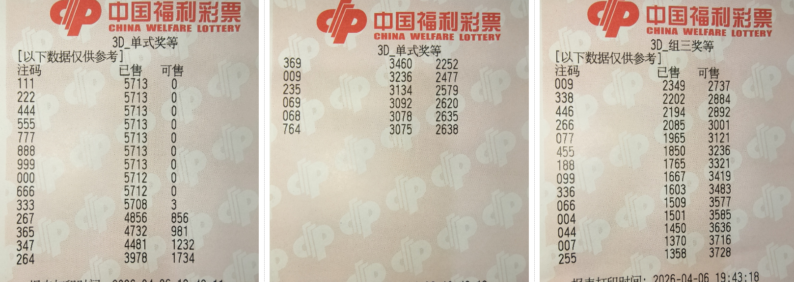 由于3D玩法灵活多变,我主要使用统计这些对码和补码的出次,选取排序前四的号码来做胆组。
