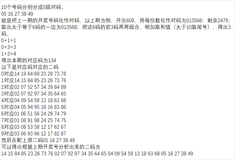 第一步:找出上期号码的对码补码