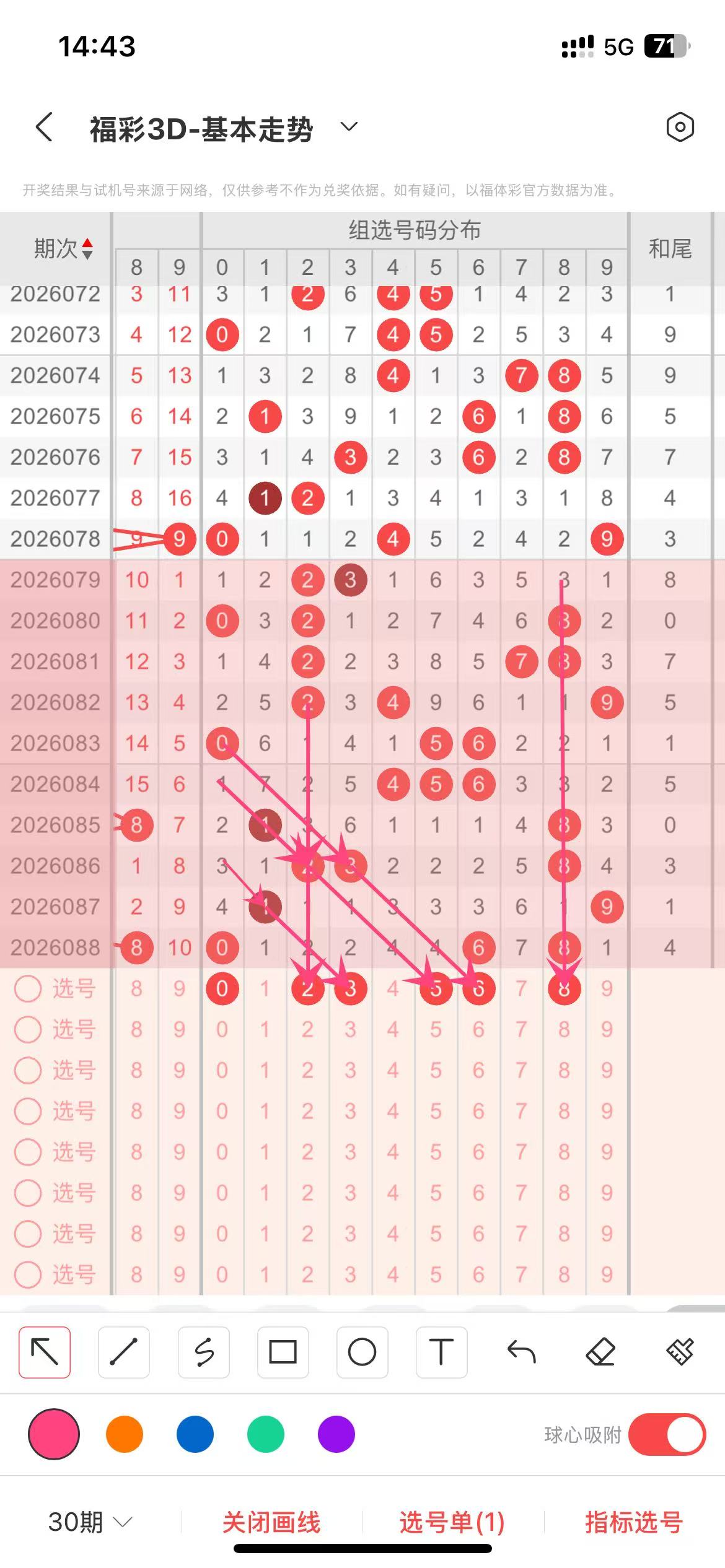 · 胆码:重点回补冷号7;关注热号1、6、8的延续性;另外0、2、3、4、5、9也有机会