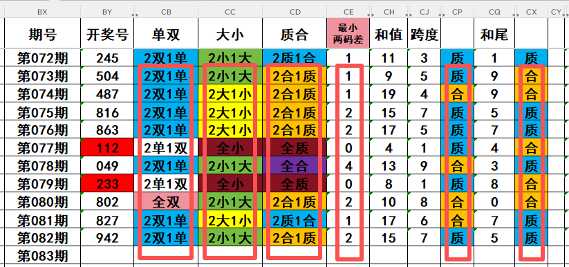 2,目前开奖号十位号码球11天当中,质数(12357)开出了4次,合数(04689)开出了7次,本期重点关注开奖号十位号码球质数的回补!