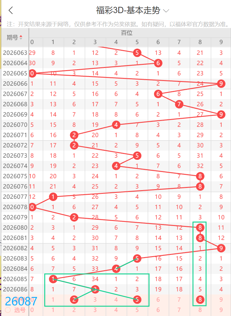 上期百位开出遗漏34期的3,0路号,上上期和上上上期都为1路号,本期看2路号下落,2号作为阶梯落位,空6下空7,作为上期的邻码,又很大概率下落,5号作为斜三连的号,空3走势,8号双重空3双重空5,连续两期重8,本期有望下落回补,本期个人看2路,主看2,防8