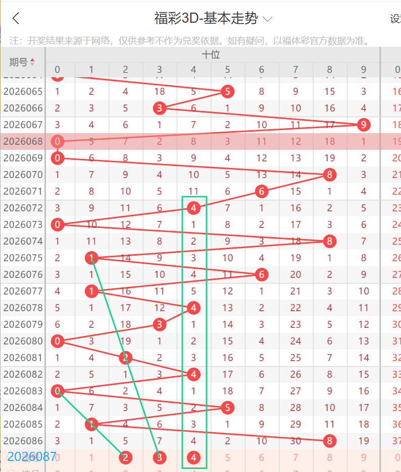 上期十位开出8,2路号,近10期开出1路4次,2路3次,0路开出3次,本期还是看小数位,2,3作为斜3连,分别是空5,空7的走势,4号形成不规则的顺位5-3-4遗漏,又机会下落,本期个人看1路,主看4,防2