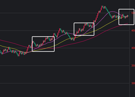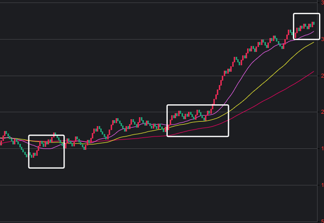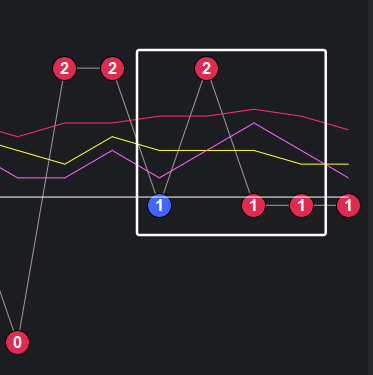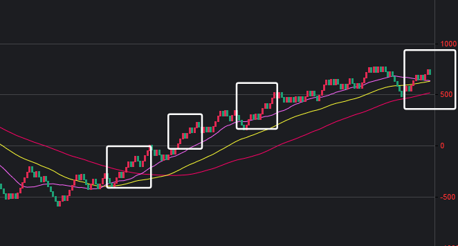 可以看到一些规律,在粉框中,如果一致,那么接下来这些跨度也会出。