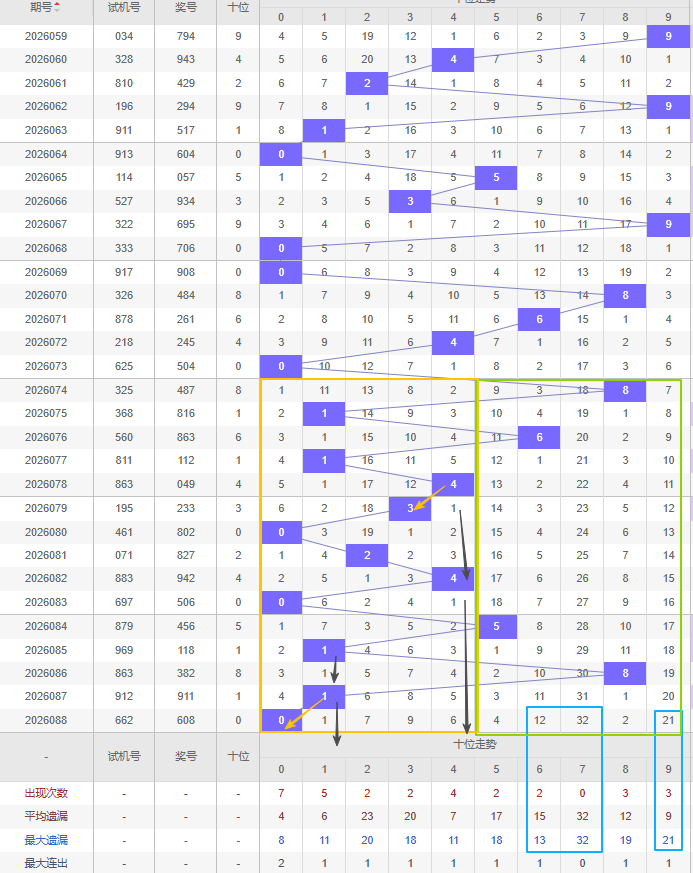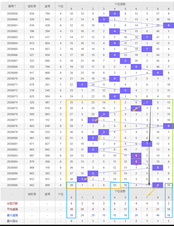 福彩3D第2026089期个位先分析奇数偶数,近十五期开出奇数号6期,开出偶数号9期,开出偶数号的概率比开出奇数号的概率大。近十余期都是奇数偶数间隔开出的,上一期又开出了偶数8号,本期还是看好增加奇数,建议考虑遗漏期数较大的奇数号,比如5号遗漏十期以上且达到平均遗漏期数和最大遗漏期数,都可以防冷号开出。7号本期若开出则形成6-7的形态,而且本期若开出可以作为上期开出的8号的邻号开出。