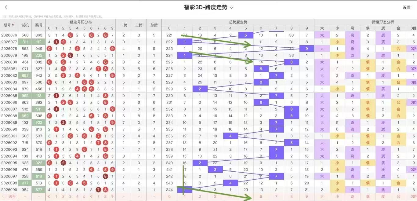 2026100期福彩3D跨度走势图如下: