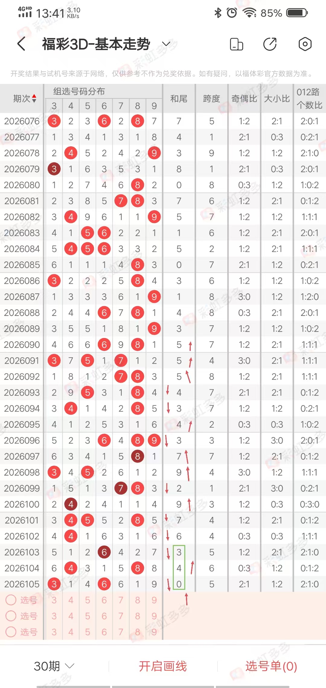 杀神福彩3D2026106期规律走势分析:上期中两注直选